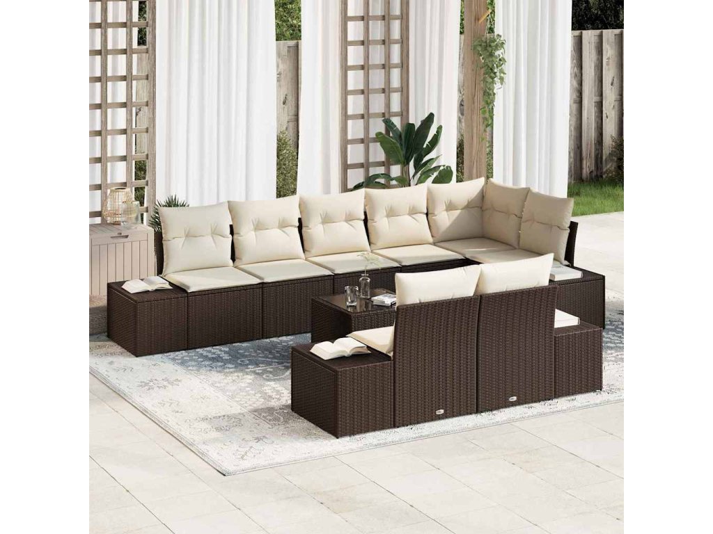 Tento venkovní set pohovek spojuje styl a pohodlí pro tvoji zahradu, balkon nebo zimní zahradu. Jeho elegantní design využívá silný polyratan a pohodlné polštáře, aby zlepšil tvé venkovní lenošení.