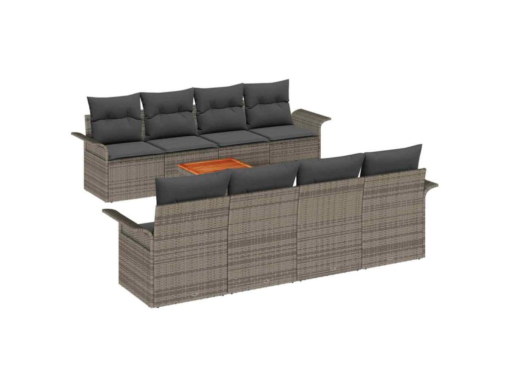Tato sada zahradních pohovek spojuje styl a pohodlí pro venkovní lenošení, s moderním designem, který dodává šmrnc jakémukoliv patiu nebo zahradě. Hladké povrchy a měkké šedé polštáře vytvářejí vítanou zónu pro setkání s přáteli a rodinou, což dělá venkovní akce příjemnější.