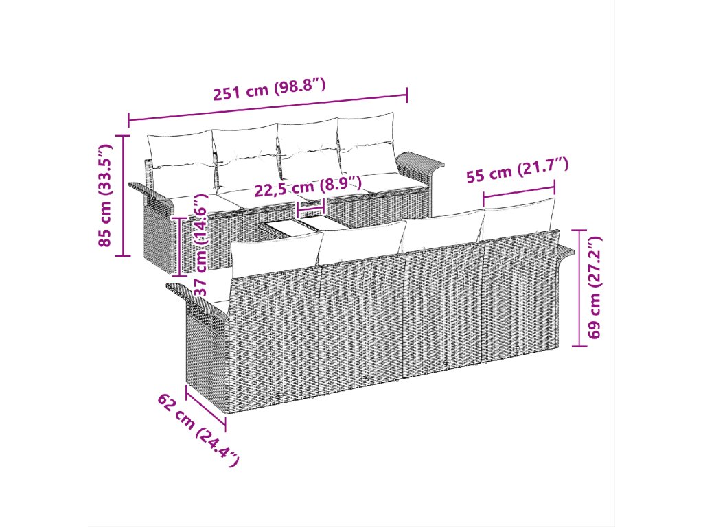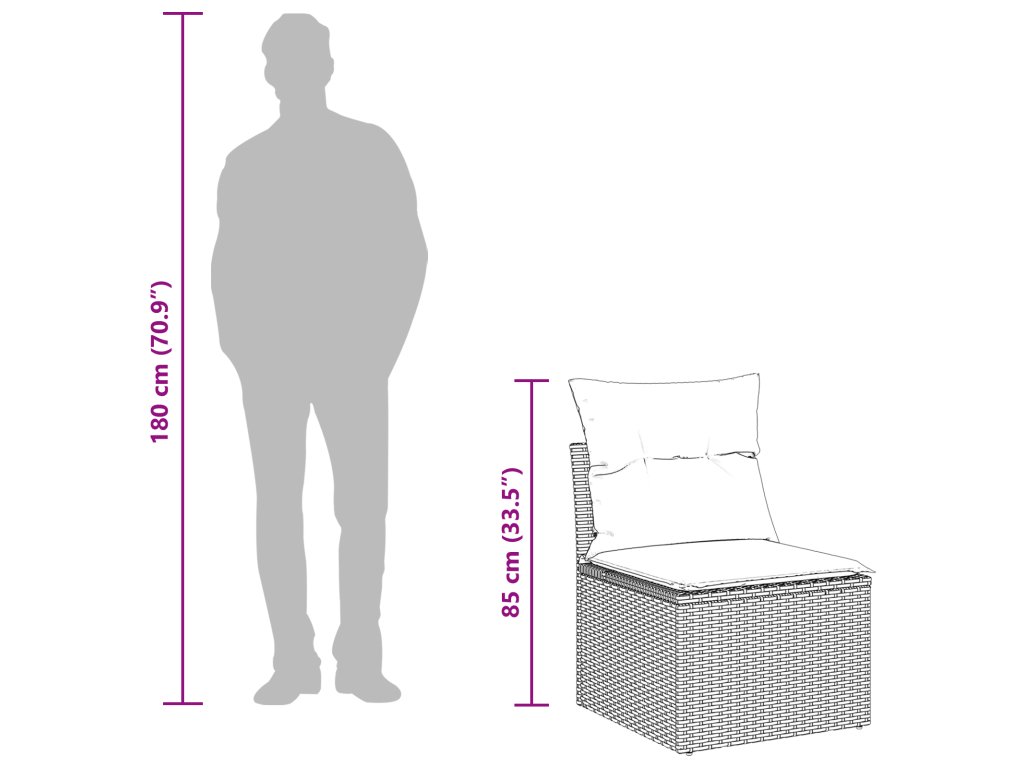 - Odolné materiály: Vyrobeno z UV-odolného ratanu, tato pohovka přežije vítr či déšť a udrží si svůj vzhled a sílu na dlouho. Silný rám vydrží intenzivní používání a neztratí stabilitu.