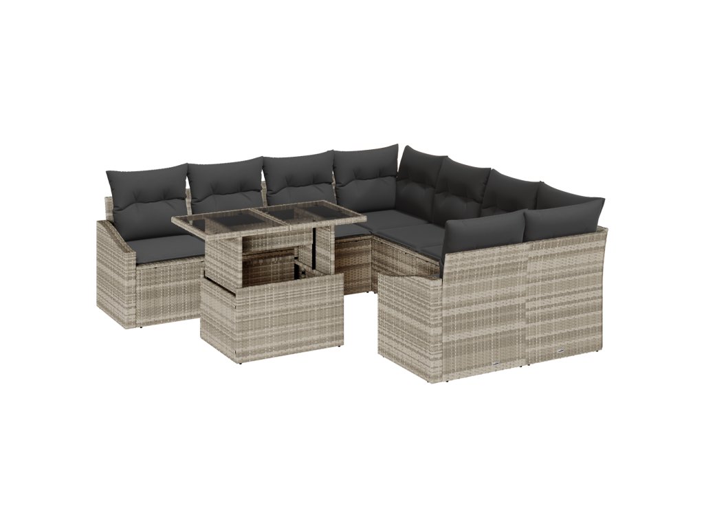 Tento 9-dílný set zahradních pohovek oživí každou venkovní plochu svým moderním stylem. Vyrobený z pevných materiálů, jako je syntetický ratan a sklo, je to chytrý a elegantní způsob, jak si užít čas venku s kamarády a rodinou.
