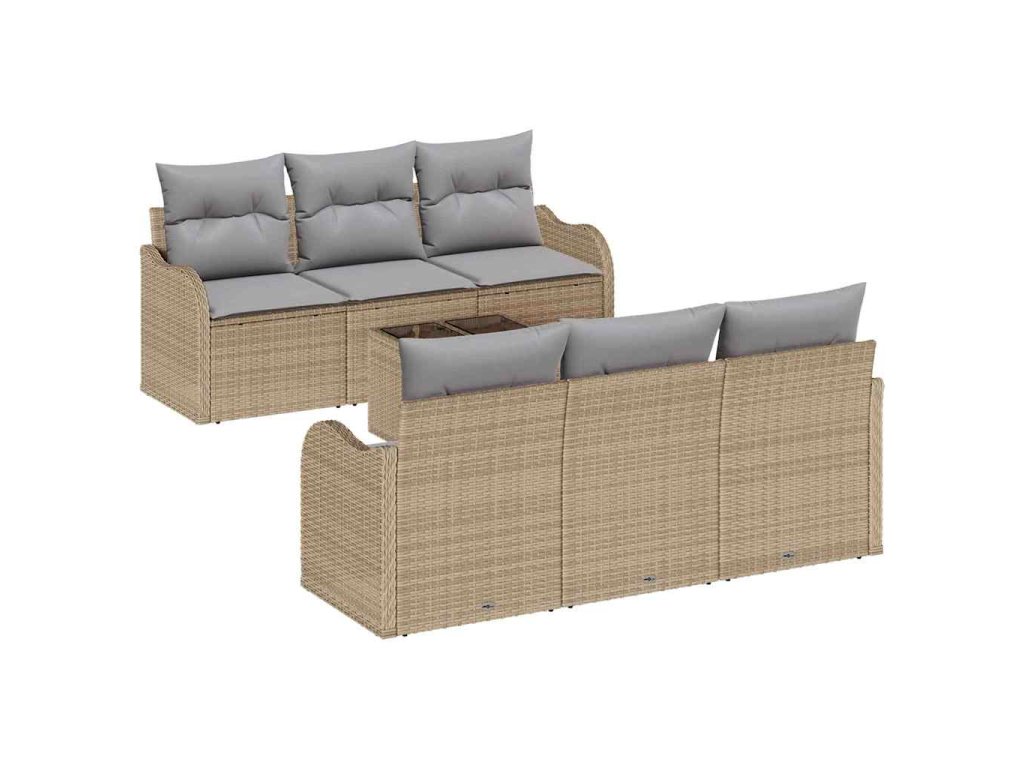 Tato 7-dílná zahradní souprava je skvělý doplněk pro vaše vnitřní a venkovní prostory. Je vyrobená z béžového poly ratanu, vypadá skvěle a je odolná. Obsahuje pohodlné šedé polštáře, které krásně ladí s lehkým ratany, což je ideální pro lenošení, zábavu nebo jen užívání klidného večera venku.