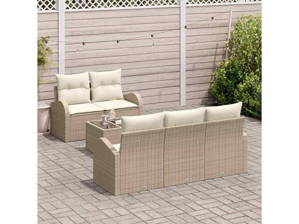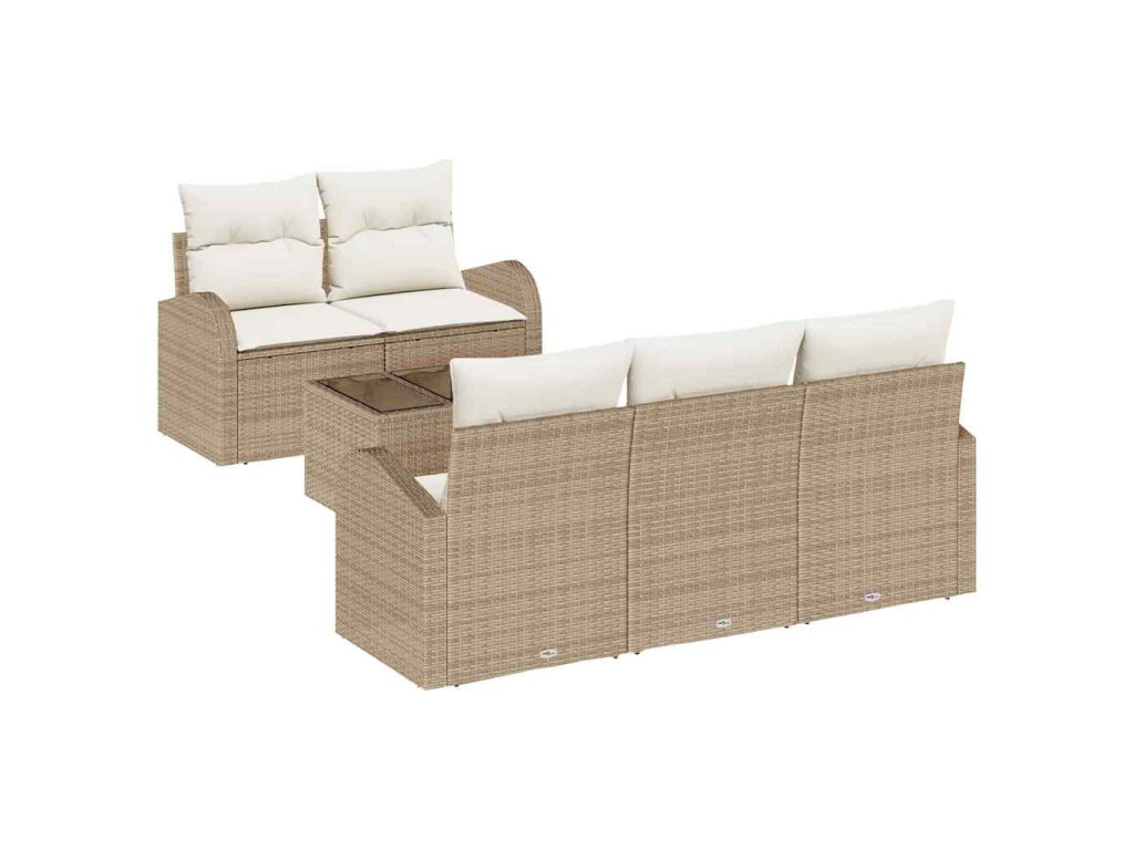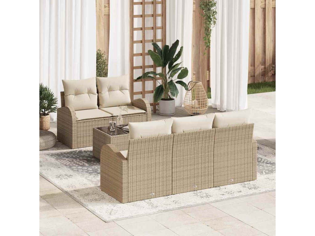 Tahle sada zahradních pohovek je skvělou kombinací stylu a funkce, ideální pro jakékoliv venkovní prostory. S šesti ladícími kusy v hezké béžové barvě nabídne pohodlné sezení pro 5 lidí, skvělá na venkovní párty, rodinné akce nebo jen tak na sluníčku.