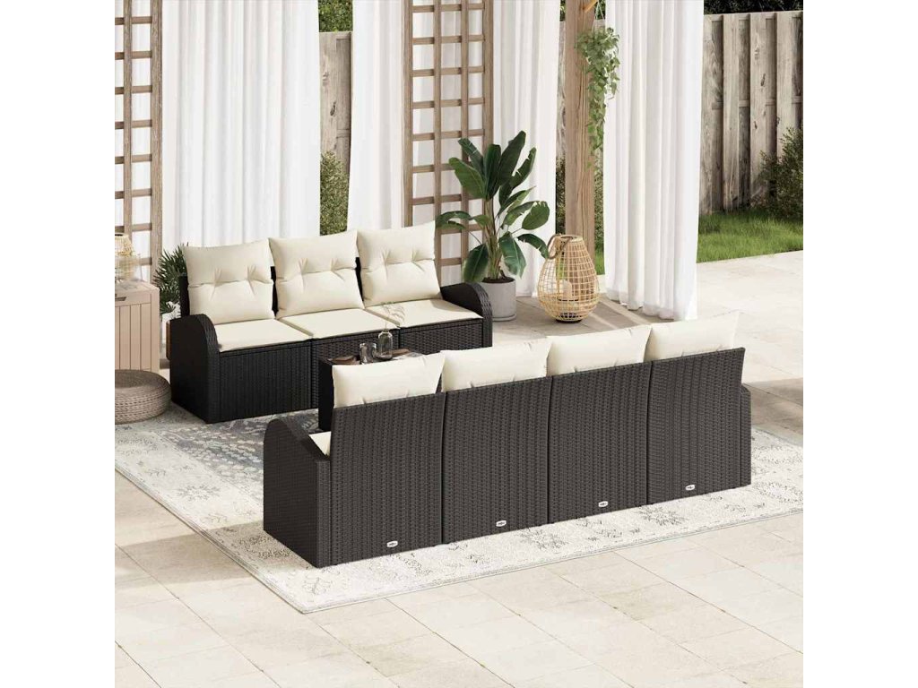 - Materiály: Vyrobeno z poly ratanu, tento pohovkový set spojuje odolnost s čerstvým vzhledem, což je ideální pro venkovní použití. Tvrzený skleněný stůl dodává sofistikovaný dotek a snadno se udržuje – ideální pro venkovní lenošení.