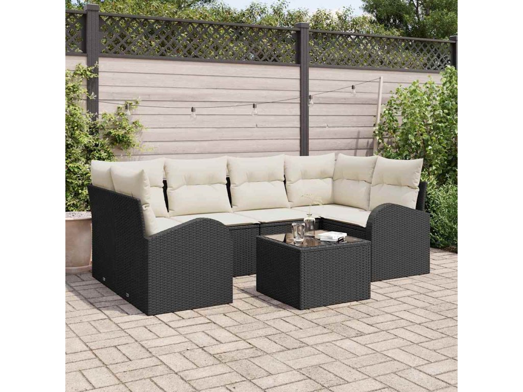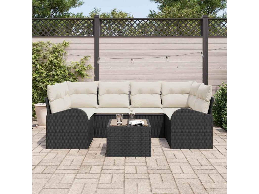 Tato sada zahradního sofa kombinuje pohodlí a styl, takže vaše venkovní prostory se stanou skvělým místem na relaxaci. Je vyrobená z kvalitního polyratanu a krémových a černých polštářů, což ji činí ideální pro jakýkoli venkovní prostor, a přináší skvělý vzhled a všestrannost pro posezení nebo jen tak na odpočinek.