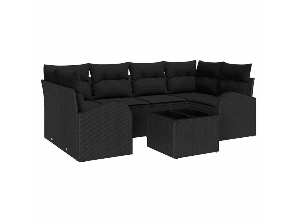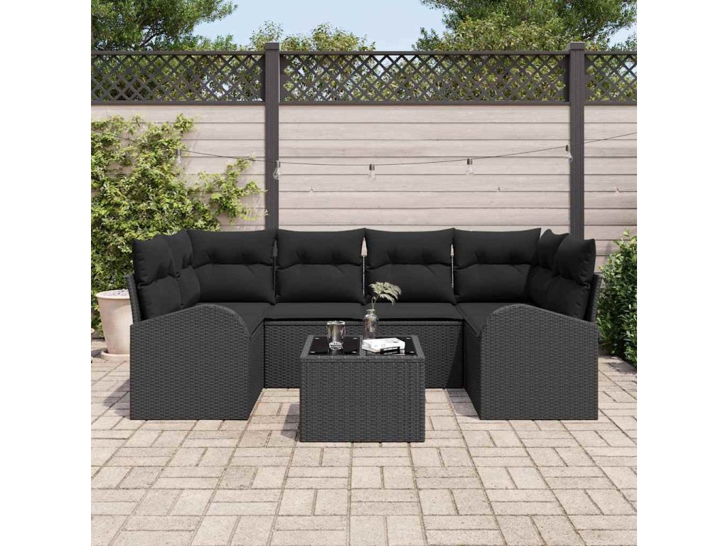 Tato sada zahradních pohovek je skvělou kombinací pohodlí a moderního stylu, která promění tvé venkovní prostory v útulné útočiště. Vyrobená z kvalitního ratanu a se stylovými černými polštáři, je ideální pro jakékoli venkovní místo a nabízí kombinaci vzhledu a praktičnosti pro setkání a relaxaci.