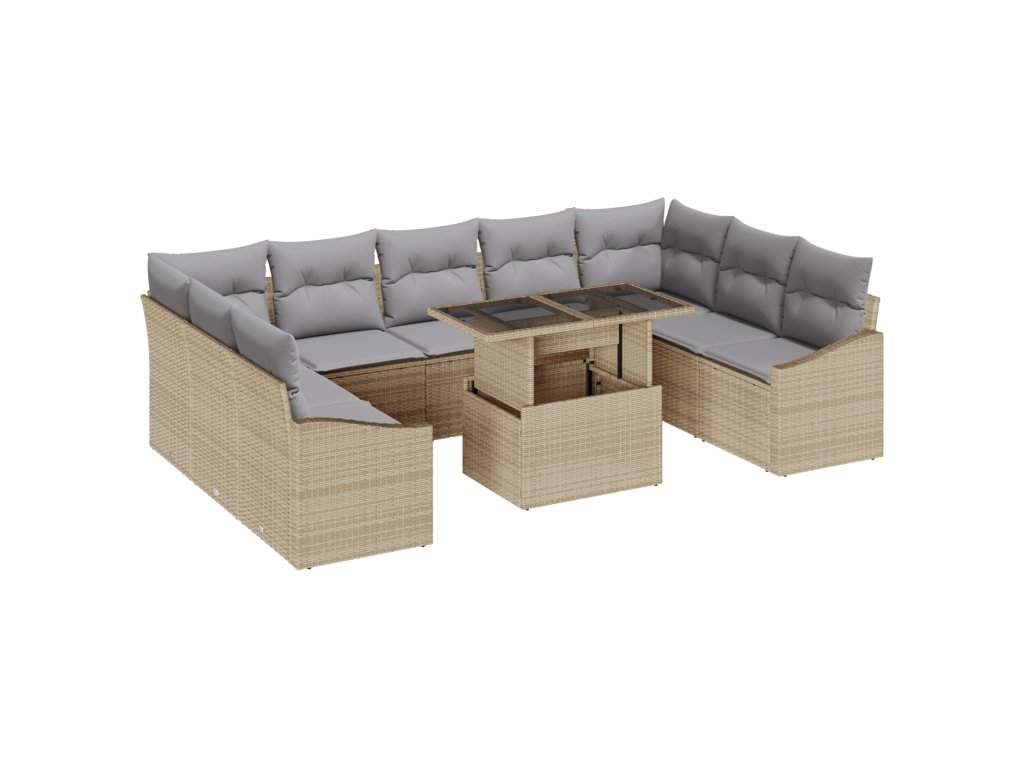 Tato 10-dílná zahradní sedací souprava spojuje styl s praktičností a nabízí moderní design, který obohatí každý venkovní prostor. Díky různým uspořádáním sezení je to skvělý kousek na tvůj balkon, do zahrady nebo zimní zahrady.