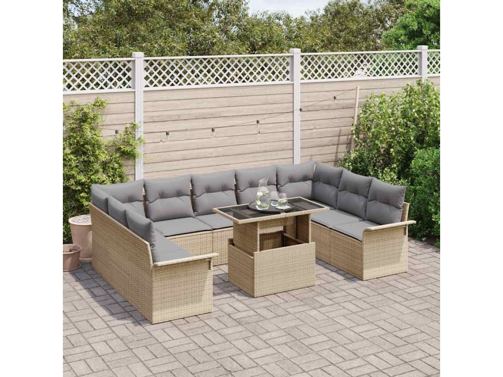 Tato 10dílná zahradní pohovková sada je skvělým způsobem, jak proměnit tvou venkovní plochu v stylový relaxační prostor. Vyrobená z poly ratanu, vypadá parádně a nabízí pohodlí a výdrž pro odpočinek pod sluncem nebo hvězdami.