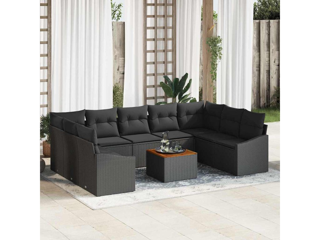 Tato zahradní pohovka usnadňuje venkovní odpočinek se svým elegantním vzhledem a pohodlným sezením pro všechny. Stylová černá barva s měkkými polštáři vytváří příjemnou atmosféru, která rozjasní jakýkoli venkovní prostor.