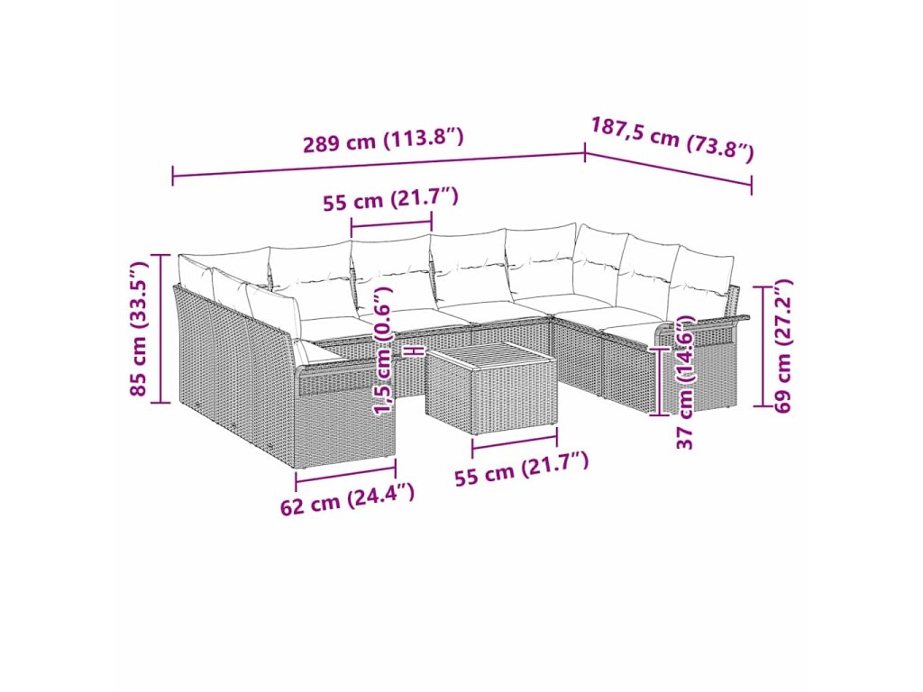 Tahle sada zahradních pohovek je skvělým doplňkem pro tvůj venkovní prostor na lenošení, dodává styl a pohodlí pro shromáždění nebo relaxaci. Její moderní design a dostatek místa na sezení přemění jakoukoliv terasu nebo zahradu na útulný prostor pro přátele a rodinu.