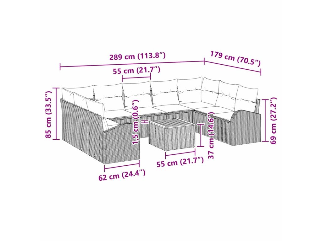 - Dodání obsahuje: 5 x střední sedadlo se skladováním, 2 x rohové sedadlo se skladováním, 2 x pohovka s opěrkami a úložným prostorem, 1 x zahradní stůl
