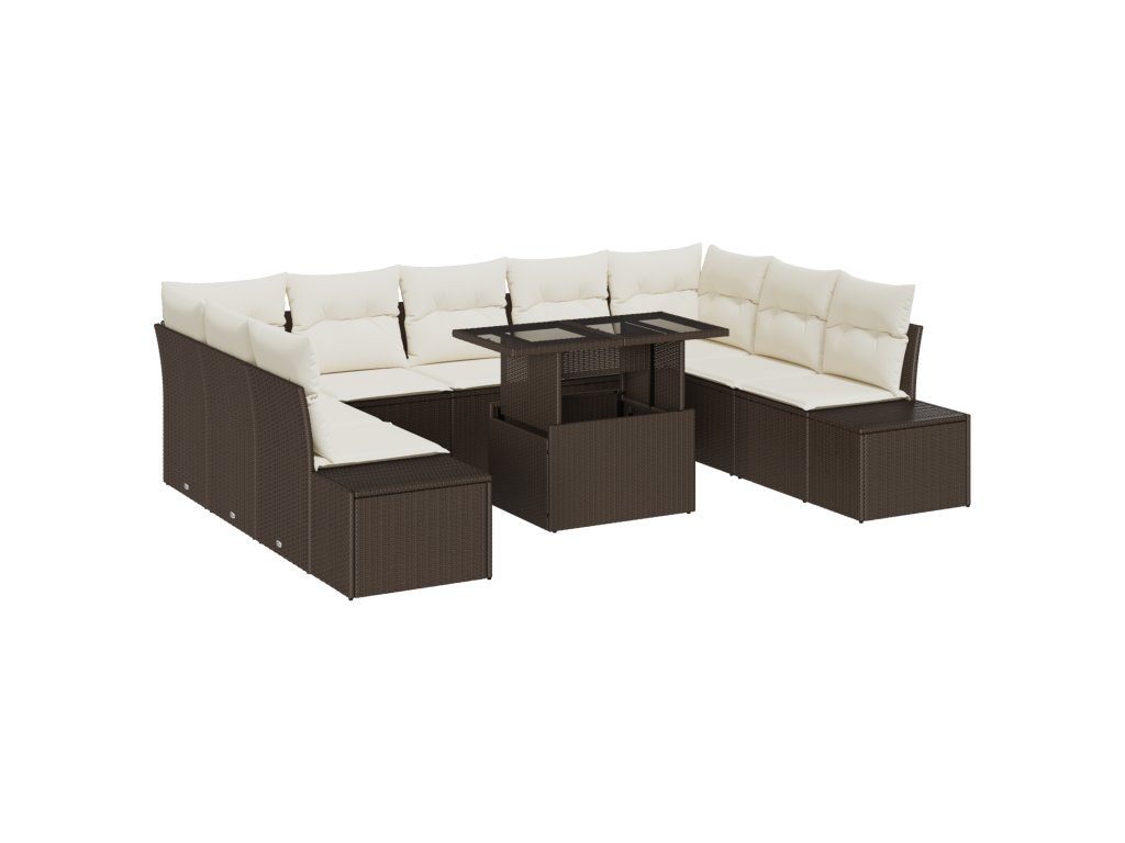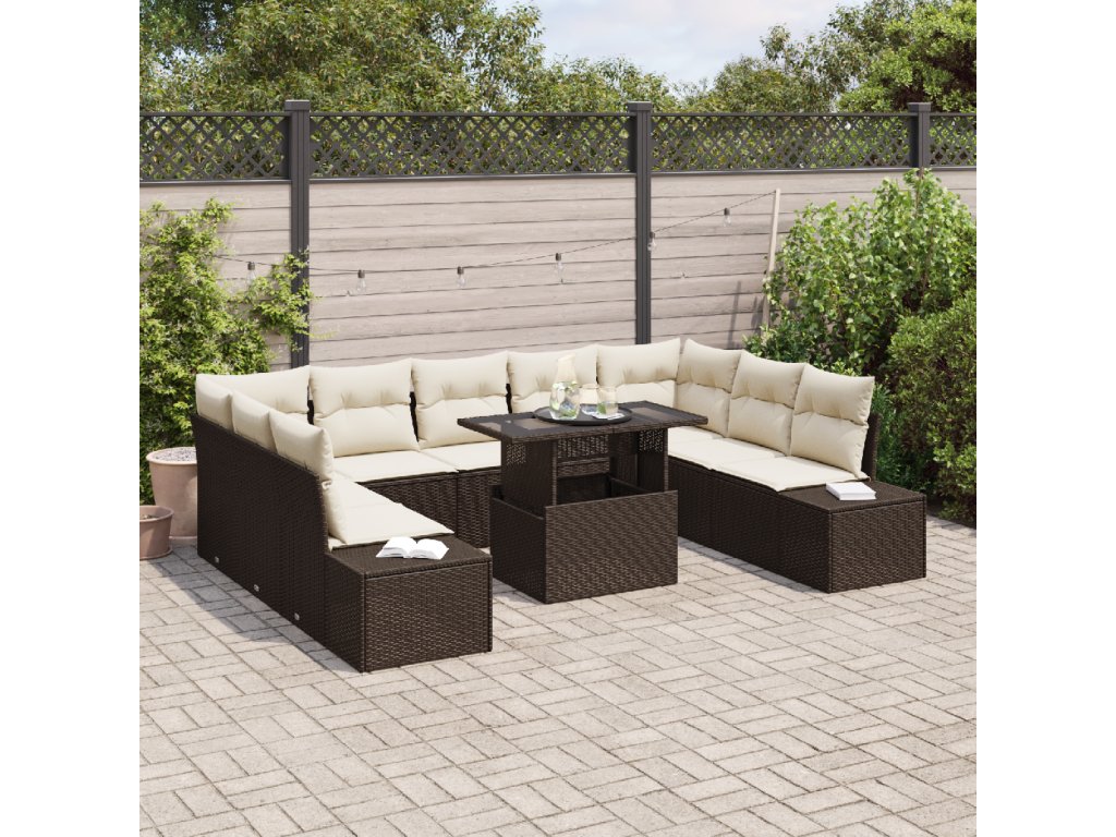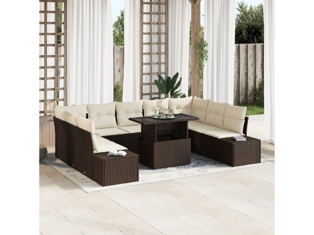 Tento pružný 10-dílný zahradní pohovkový set je přesně to, co potřebuješ pro vylepšení tvého venkovního prostoru. Elegantní design opravdu oživí tvou terasu nebo balkon. Měkké polštáře a odolný poly ratan dělají z každého kusu nejen pohodlnou volbu, ale i praktickou pro každodenní použití. Umožní ti a tvým přátelům se uvolnit a užít si pobyt venku.
