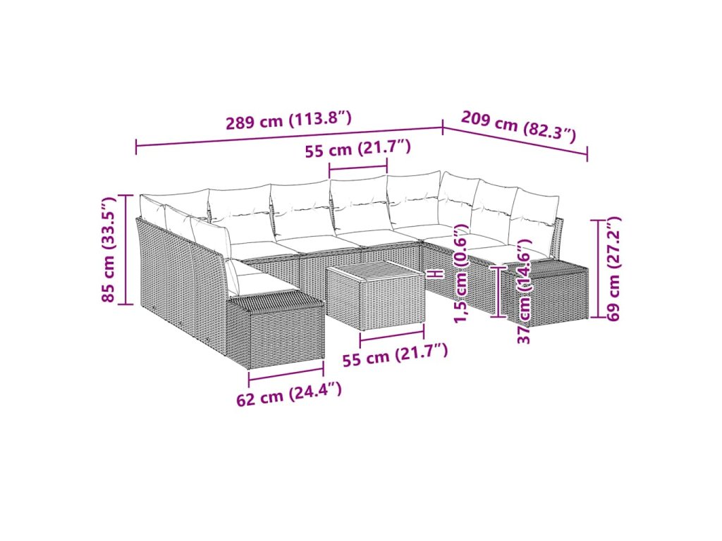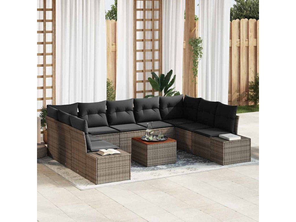Tato sada zahradní pohovky s polštáři z poly ratanu je ztělesněním stylu a funkčnosti pro váš venkovní obytný prostor. Navržena v moderním estetickém stylu se solidní tkanou strukturou, představuje současnou jednoduchost, což ji činí perfektní pro zahrady a terasy. Její obdélníkový modulární design vám umožní uspořádat pohovky do konfigurace, která vyhovuje vašemu prostoru a potřebám, poskytující dynamické a přizpůsobitelné venkovní sezení. Její prezentovatelný zadní díl a polyesterové polštáře zvyšují její přitažlivost, dodávající útulný dotek, který zve k odpočinku.