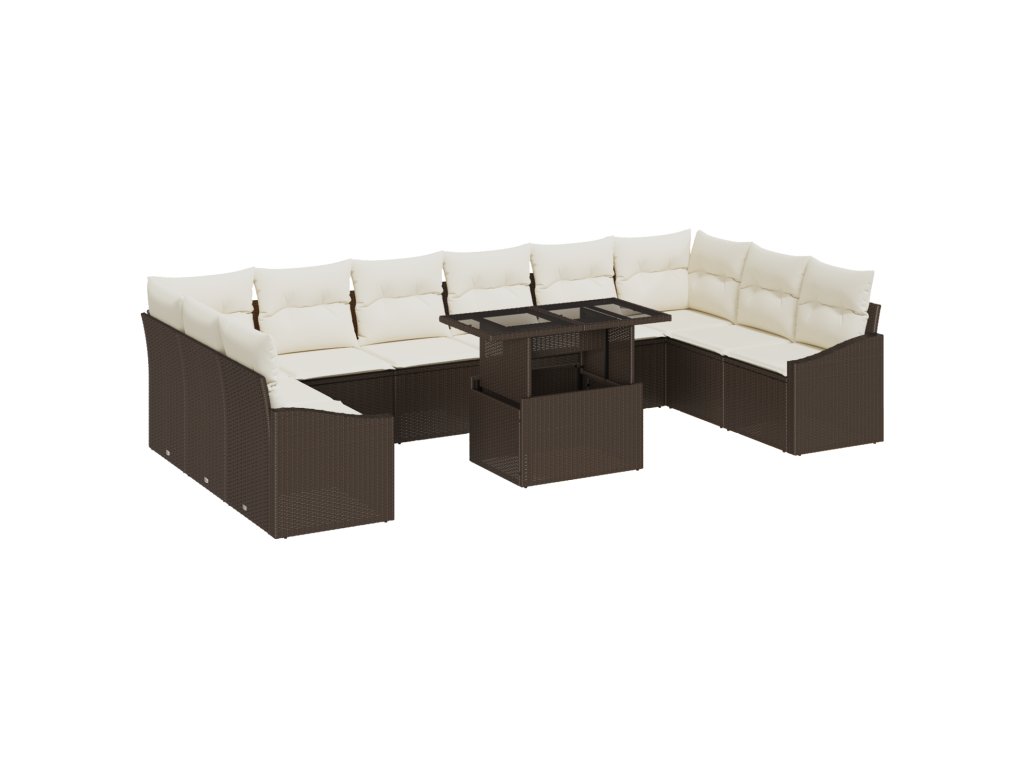 Tato sada zahradní pohovky se 11 kusy je stylová a přitom praktická volba pro tvoje venkovní prostory. Skvěle promění tvoji terasu, zahradu nebo balkon na pohodlné místo na relaxaci. Snadno unesou až 10 lidí a kombinují moderní vzhled s pevností, co potřebuje venkovní nábytek. Perfektní pro příjemná setkání nebo elegantní večírky.