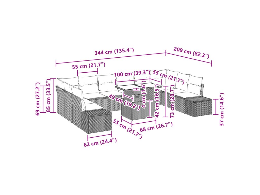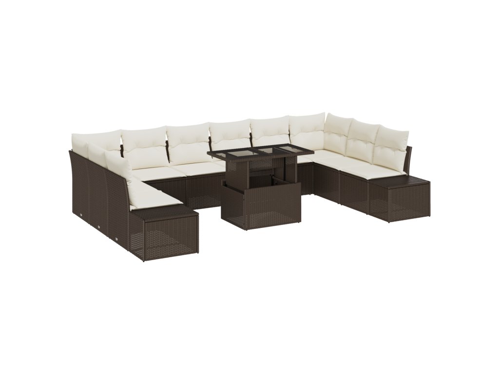 Tato 11-dílná zahradní pohovka nabízí skvělou kombinaci moderního stylu a užitkové funkčnosti, navržená přesně pro venkovní prostory. Pěkná kombinace hnědého a smetanového ratanu dodává teplou atmosféru, ideální na odpolední lenošení nebo povídání s kamarády.