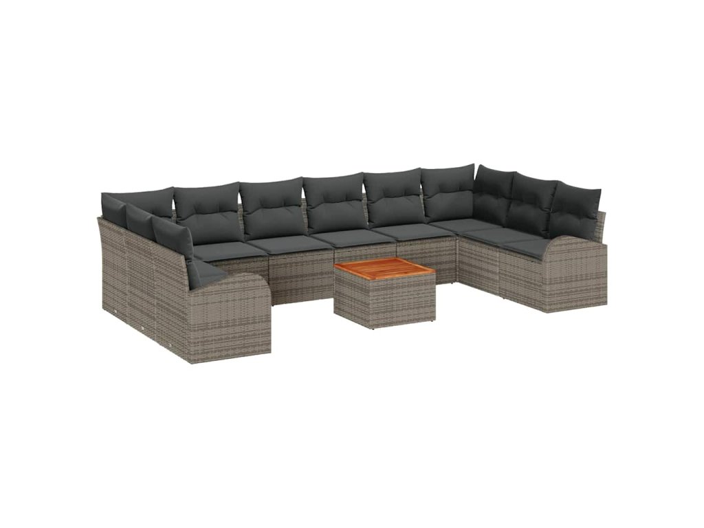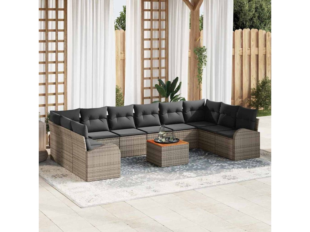 - Kompletní sedací souprava: Skládající se ze šesti centrálních sedadel, dvou rohových dílů, dvou arm sofas a koordinované zahradní stolky, tato souprava nabízí všestranné sedací řešení, které lze bez námahy reconfigurovat. Robustní konstrukce každého kusu slibuje pevné pohodlí a užitnost, což z ní činí ideální volbu pro jakékoli venkovní společenské prostředí.
