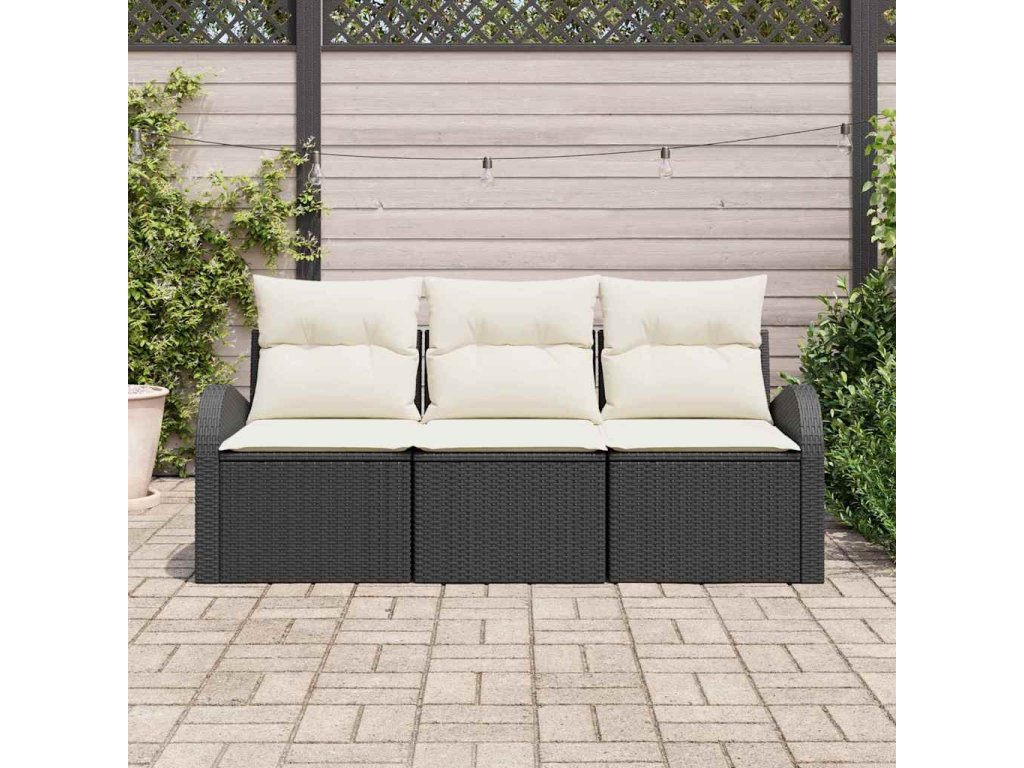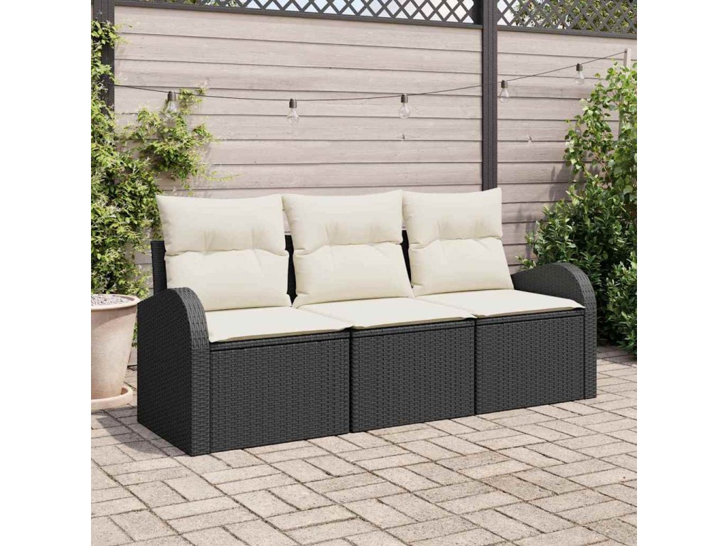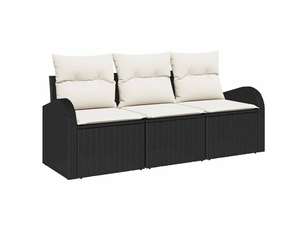 Tahle sada venkovní pohovky spojuje styl a funkčnost, což z ní dělá skvělou volbu pro každou terasu nebo zahradu. S elegantním designem z černého polyratanu má moderní vzhled a pohodlně usadí tři dospělé, čímž vytvoří příjemnou atmosféru pro odpočinek nebo setkání.