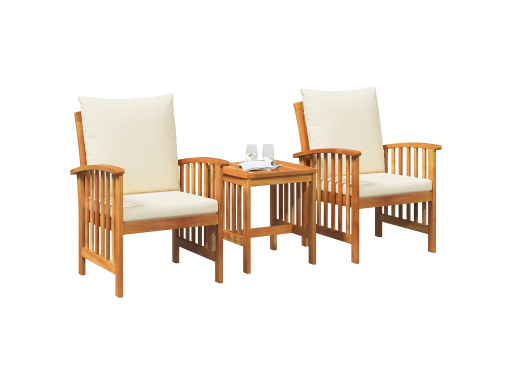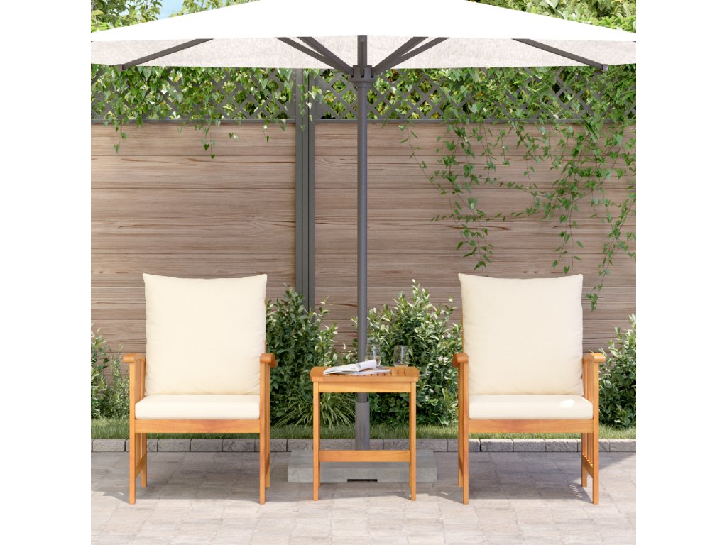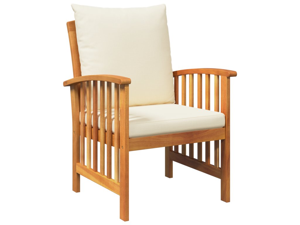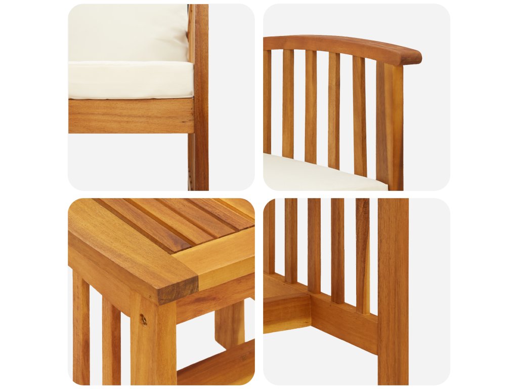 - Rám z masivního akáciového dřeva je zárukou dlouhé životnosti, takže set zvládne různé povětrnostní podmínky a ještě vypadá stylově.