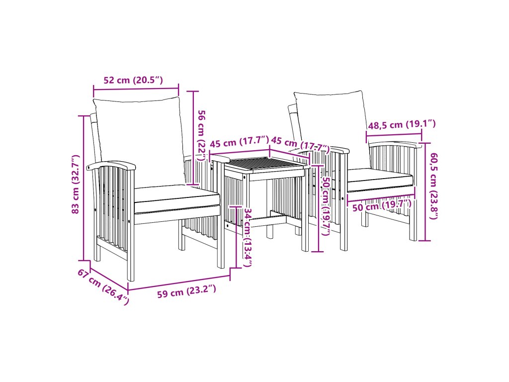 - Kompaktní velikost čtvercového stolu a křesel je ideální pro společná jídla, pohodlně pojme až tři osoby.