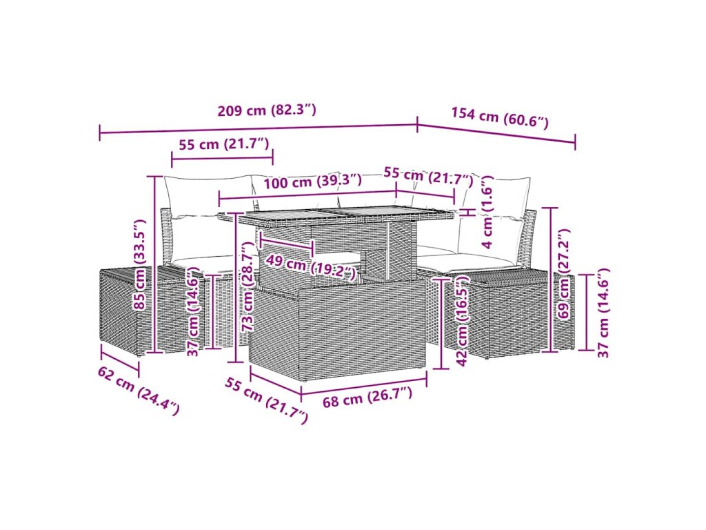 - Úložná Funkčnost: Každý kus má skryté úložné prostory, kde můžeš schovat polštáře, když nejsou potřeba, a tak udržovat venkovní prostor v pořádku.