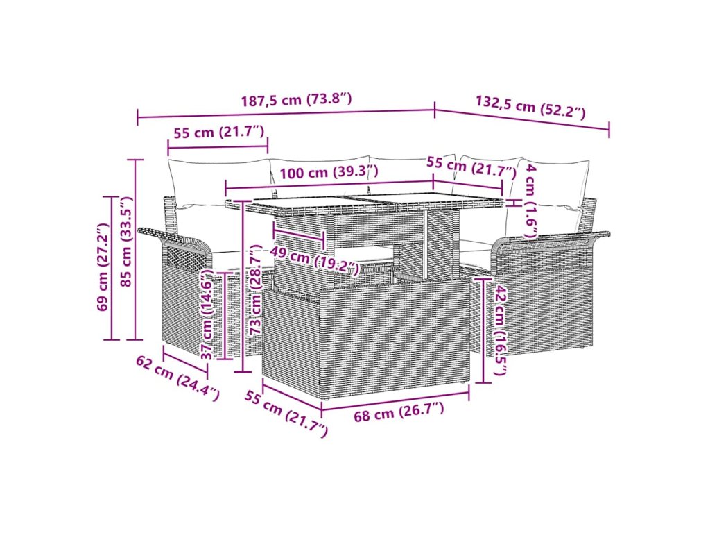 - Stylový vzhled: Dokončeno v texturovaném béžovém poly ratanu, sedací souprava nabízí elegantní a moderní vzhled. Její čisté linie a teplé tóny z ní dělají skvělý středový prvek, který se hodí k jakékoli venkovní dekoraci.