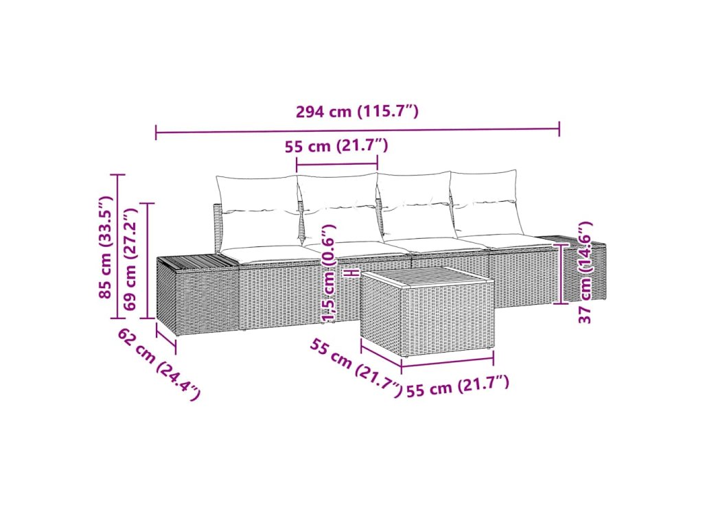- Práškový lakovaný rám: Tato sofa sada má ocelový rám s práškovou povrchovou úpravou, která nabízí vynikající ochranu proti korozi. Tento povrch poskytuje atraktivní vzhled podobný ratanovému, který doplňuje poly ratanovou konstrukci, přičemž zajišťuje strukturální pevnost i proti povětrnostním vlivům.
