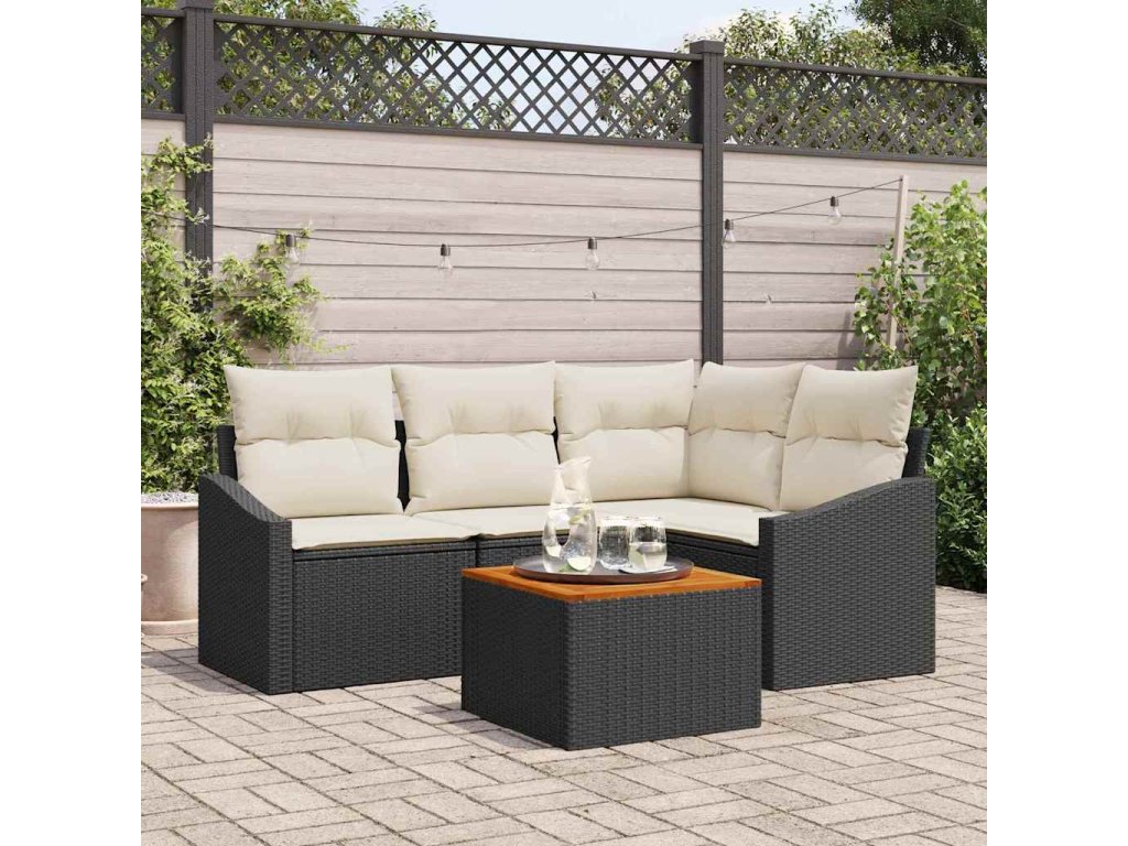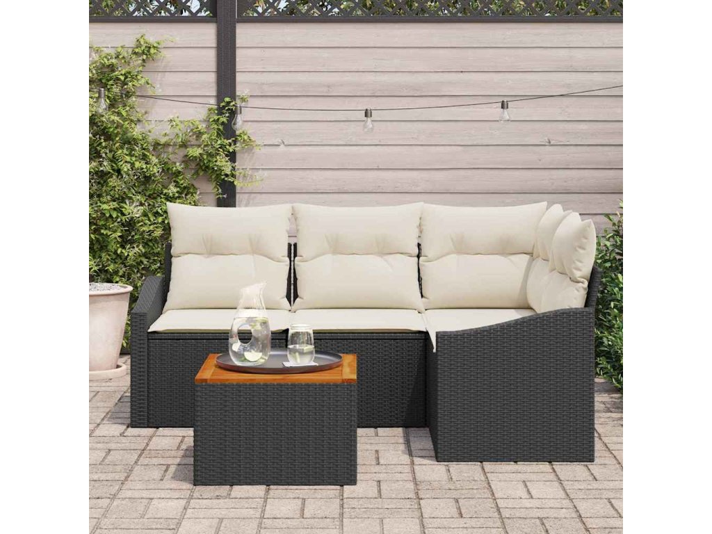 Tato zahradní pohovka má moderní design, co ozvláštní vaše venkovní prostory, a nabízí geniální řešení pro jakýkoli balkon, zahradu nebo terasu. Černý poly ratan kombinovaný s krémovými polštáři vytváří stylový a příjemný pocit, skvělý pro povídání s kámoši nebo vychutnání klidných chvilek na sluníčku.