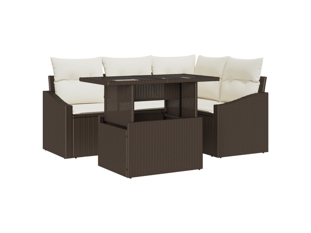 Tato 5dílná sada zahradních sedaček s polštáři je přesně to, co potřebujete na zlepšení vašeho venkovního pobytu. Skvěle kombinuje pohodlí a styl. Ideální na setkání nebo poklidné odpoledne, tato moderní zahradní sada láká přátele i rodinu, aby si užili to nejlepší z přírody a zároveň si vychutnali měkkost polštářů a pevnou ratanovou konstrukci.