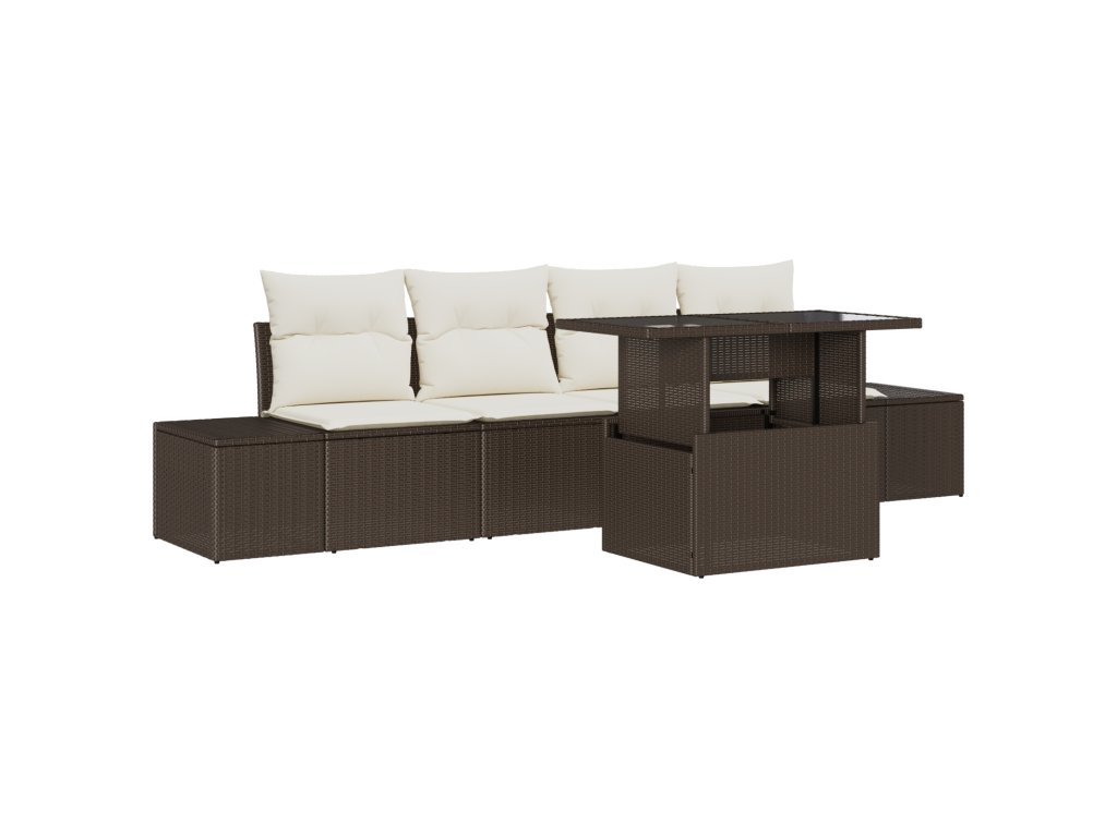Tato 5dílná zahradní pohovková sada spojuje pohodlí a styl, je perfektní pro neformální setkání venku a lenošivé odpoledne. S moderním nádechem a nádhernou hnědou a béžovou paletou pozdvihne jakoukoli zahradní nebo terasovou atmosféru a vytvoří příjemné místo pro rodinu a přátele.