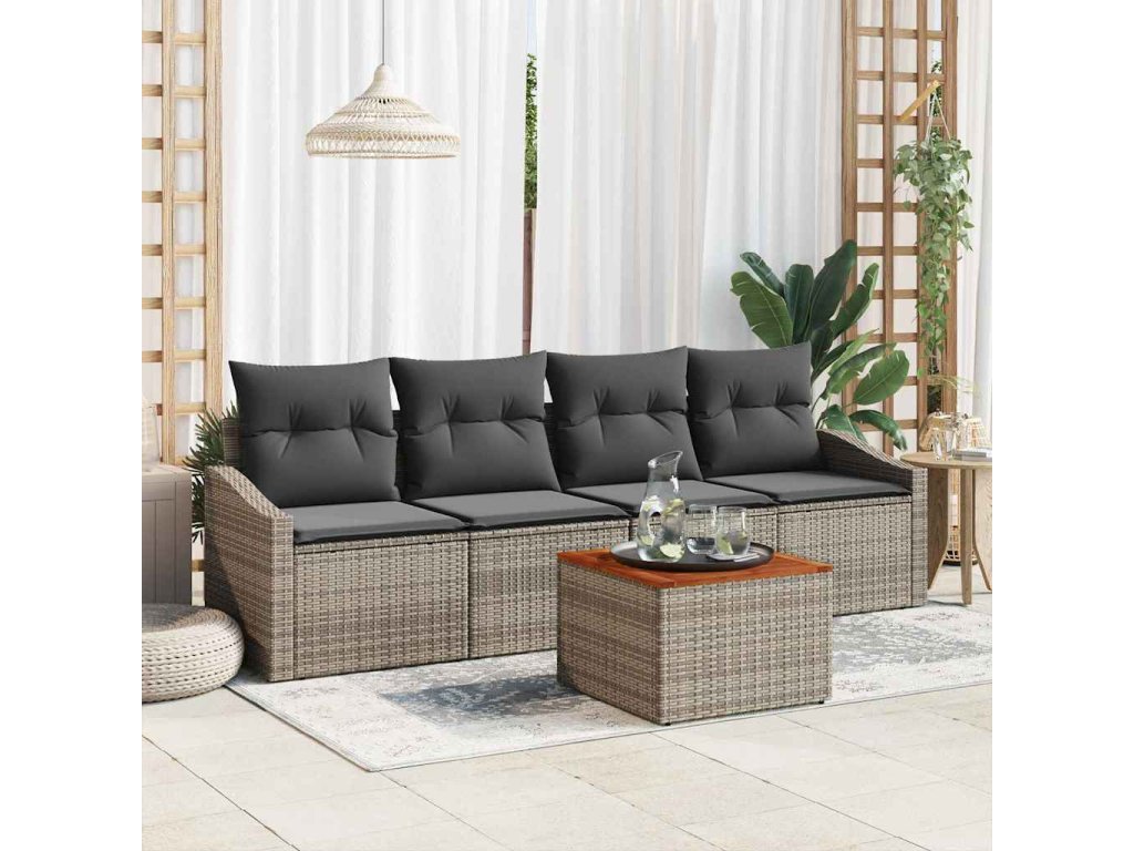 Tato zahradní souprava pohovek, dokonalá kombinace moderního designu a funkčnosti, je vynikajícím doplněním každého venkovního prostředí. Disponuje čistým, minimalistickým vzhledem s tkaným poly ratanovým povrchem, který slouží jako příjemný středobod na vaší terase nebo balkóně, vyzývá k relaxaci a společenským setkáním. Pozitivní nálada, umocněná měkkým polstrováním, dodává klid, což z ní dělá ideální volbu pro intimní oslavy i pohodové odpoledne.