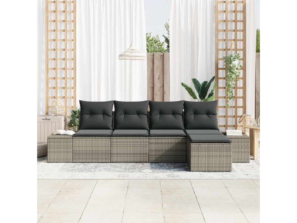 Tahle vidaXL 5dílná zahradní pohovková souprava míchá moderní styl s pohodlím, skvěle se hodí do vašeho venkovního prostoru. Postavená z odolného ratanu, tahle modulární souprava nabízí flexibilní sezení pro všechny vaše potřeby a vytváří parádní místo na odpočinek.