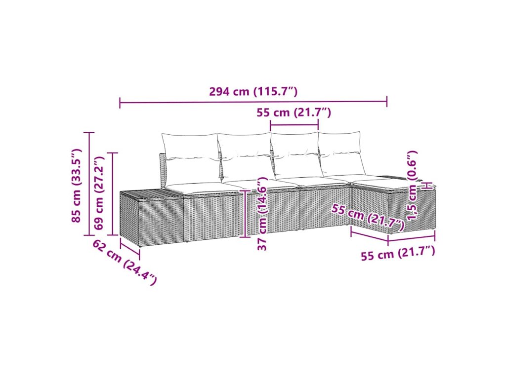 - Snadná údržba: Polštáře se snadno čistí, ratanový materiál se jednoduše udržuje, aby souprava vypadala stále jako nová.