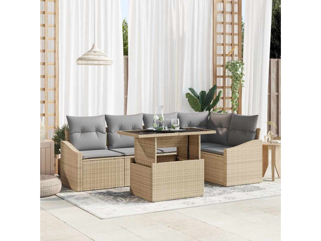 - Univerzální uspořádání Tato sada zahrnuje rohové sedadlo, dvě centrální části, dvě pohovky s opěrkami a stůl, což nabízí několik sezení na základě prostorových požadavků nebo osobních preferencí. Její univerzální rozložení je vhodné pro zahradní nebo terasové prostředí, doplňující různé venkovní motivy.