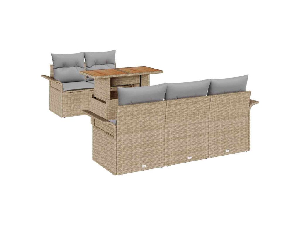 - Dodávka obsahuje: 4 x Pohovka s opěrkou včetně funkce úložiště, 1 x Střední sedák včetně funkce úložiště, 1 x Zahradní stůl
