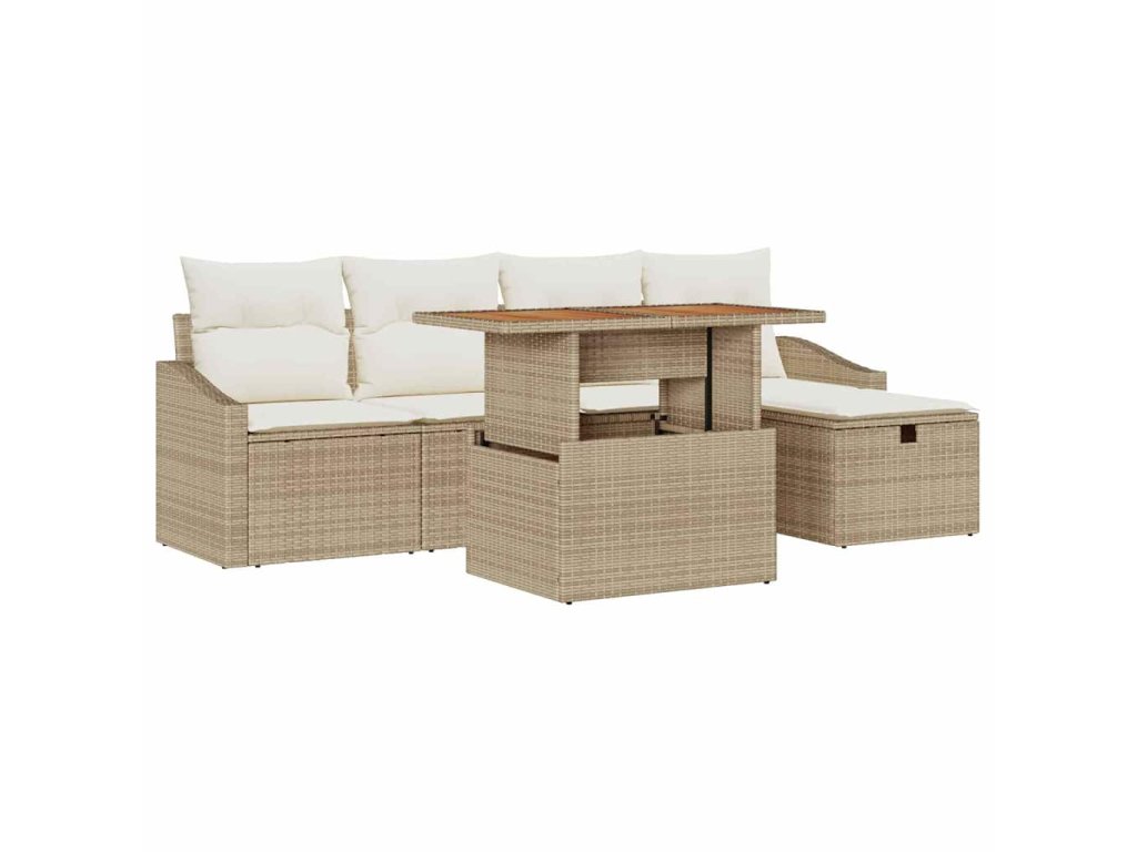 - Odolné materiály: Je vyrobená z poly ratanu a masivního akáciového dřeva, takže vydrží. Poly ratan se skvěle snáší s UV zářením a masivní akácie dodává nádhernou texturu. Tato kombinace zajišťuje, že nábytek to zvládne, ideální pro venkovní použití.