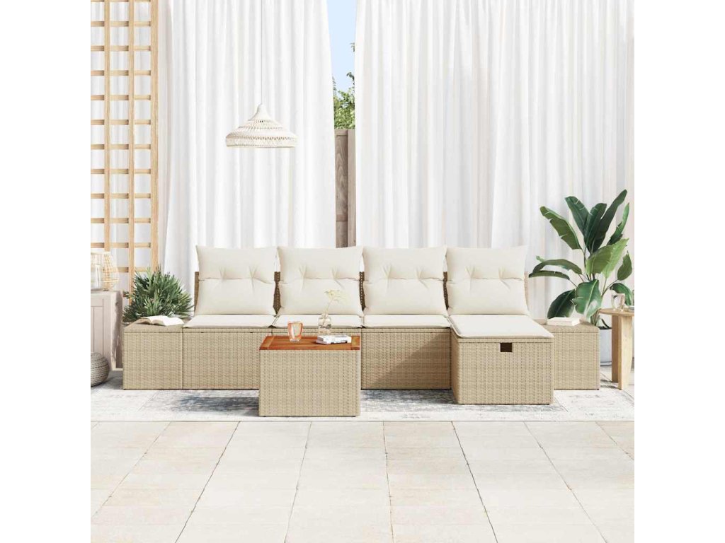 - Materiály: Vyrobená z poly ratanu a masivního akáciového dřeva, tahle sedačka má prodyšný, UV a voděodolný povrch. Je pořádně zpracovaná pro dlouhotrvající styl.