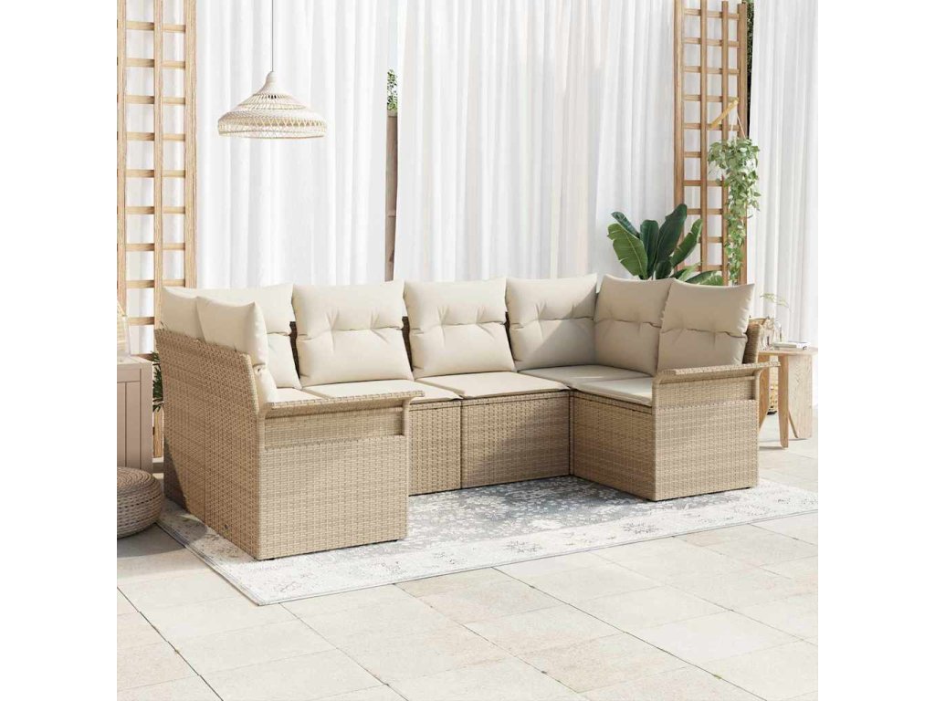 - Zahrnuté komponenty: Dva rohové sedáky, dva středové sedáky a dva armresty, všechny s šesti sedacími polštáři a osmi zadními polštáři plněnými pěnou pro maximální komfort. Polštáře mají zipy, což usnadňuje údržbu.