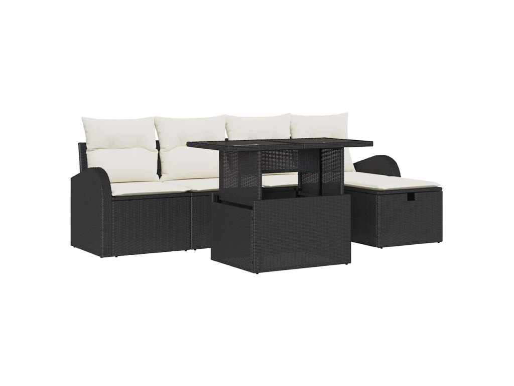 Tento set zahradních pohovek skvěle spojuje funkčnost a styl. Je to ideální místo pro relaxaci. Perfektní pro balkony, terasy nebo zahrady, s elegantním designem z černého poly ratanu a pohodlnými krémovými polštáři, dodává jak eleganci, tak pohodlí.