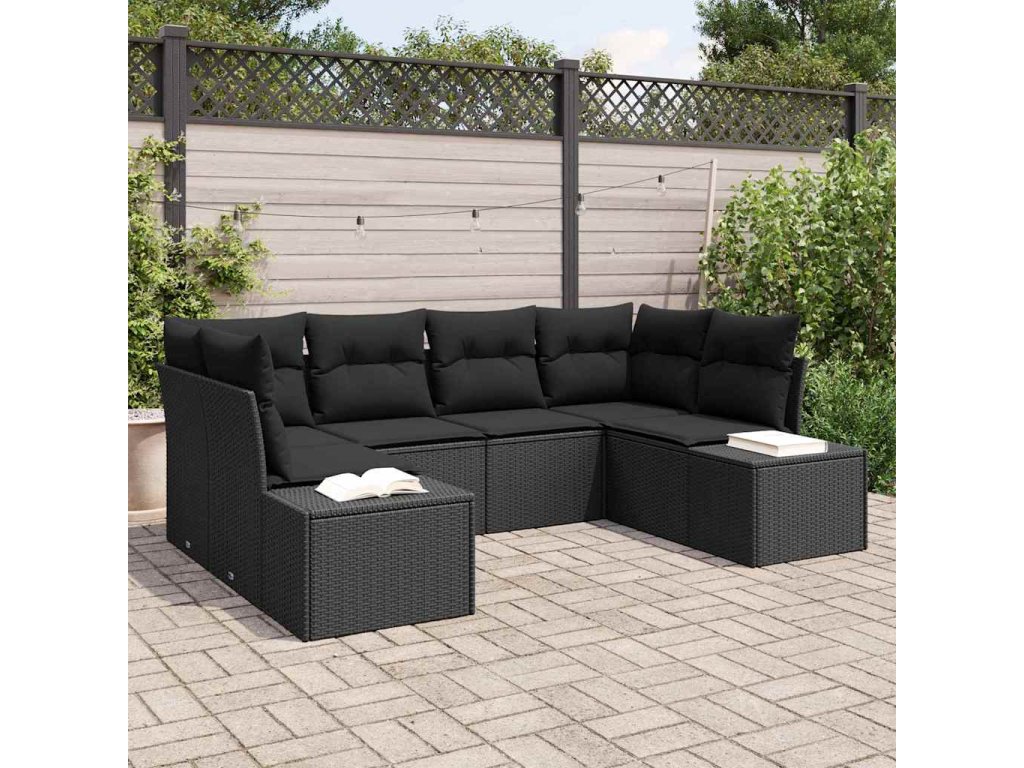 Tato zahradní souprava s šesti modulárními kusy je ideální na odpočinek venku. Elegantní černý vzhled dodává moderní šmrnc terase, balkonu nebo zahradě a vytváří skvělé místo na setkání nebo relaxaci.