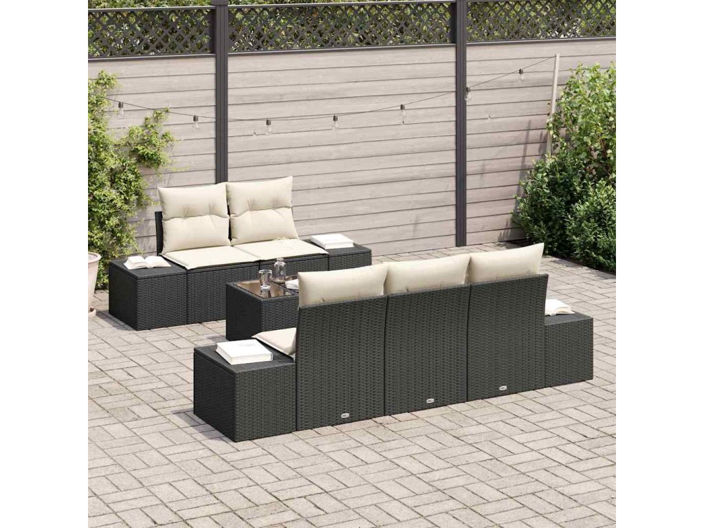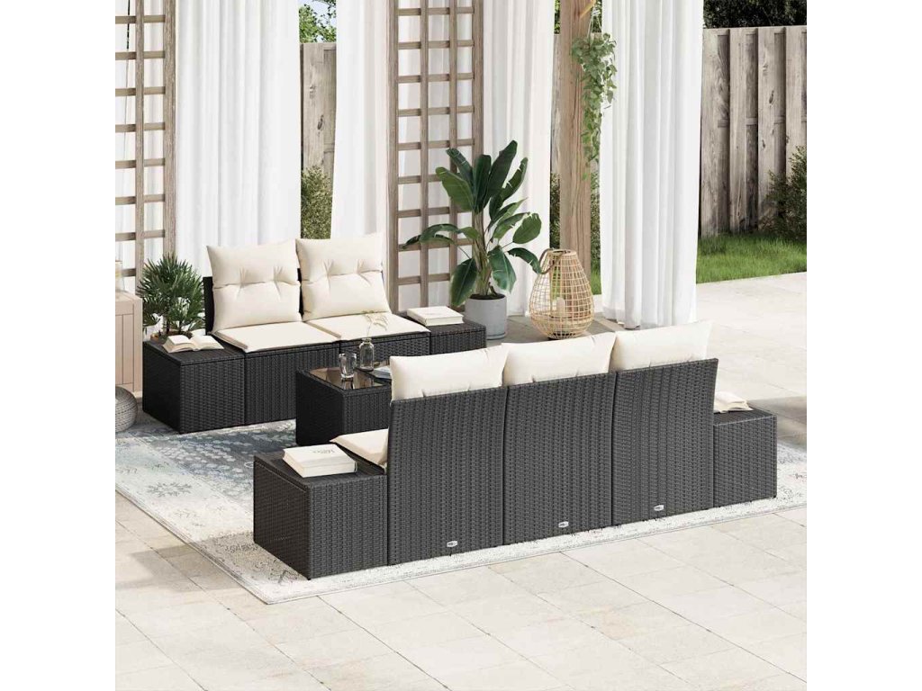 Tato 6 kusová sada zahradní pohovky je perfektní pro venkovní odpočinek. S metlem dodává pohodovou atmosféru jakémukoliv prostoru na terase nebo zahradě. Díky modernímu vzhledu a lákavým černým a krémovým barvám je nejen hezká, ale i praktická, poskytuje spoustu místa pro přátele a rodinu, aby si mohli užívat letní slunce.