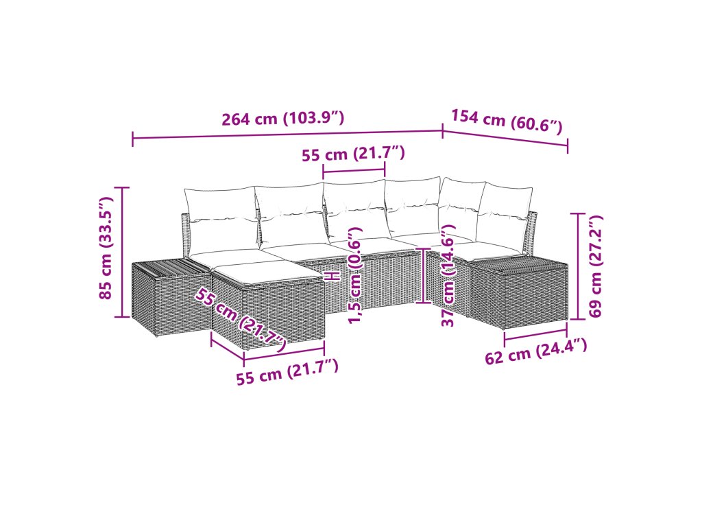 - Univerzální modulární uspořádání: Její modulární design ti umožní snadno doladit sestavu pohovky podle příležitosti, což ti dá pohodlná místa nebo větší sezení, jak potřebuješ.
