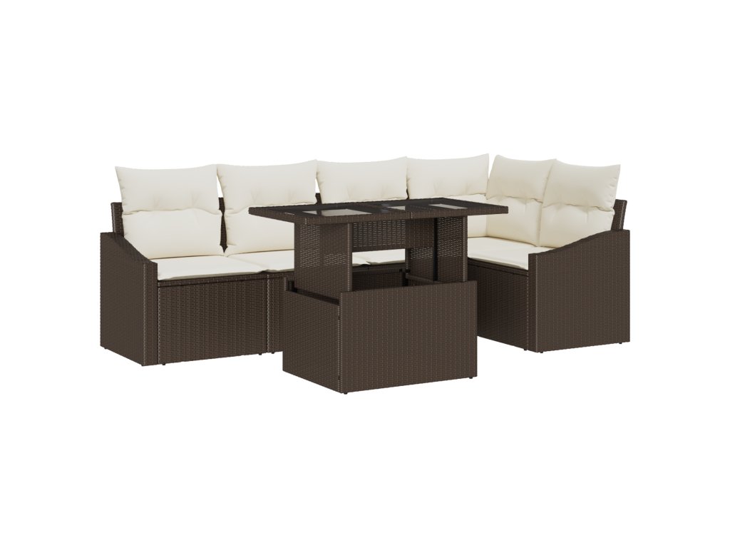 Tato 6dílná zahradní pohovka je stylovým spojením krásy a funkce, ideální pro společenské akce nebo klidné čtení. Vyrobená z kvalitního poly ratanu a potažená měkkým polyesterem, má hezký hnědý povrch, který dodává teplý nádech tvému balkónu nebo terase.
