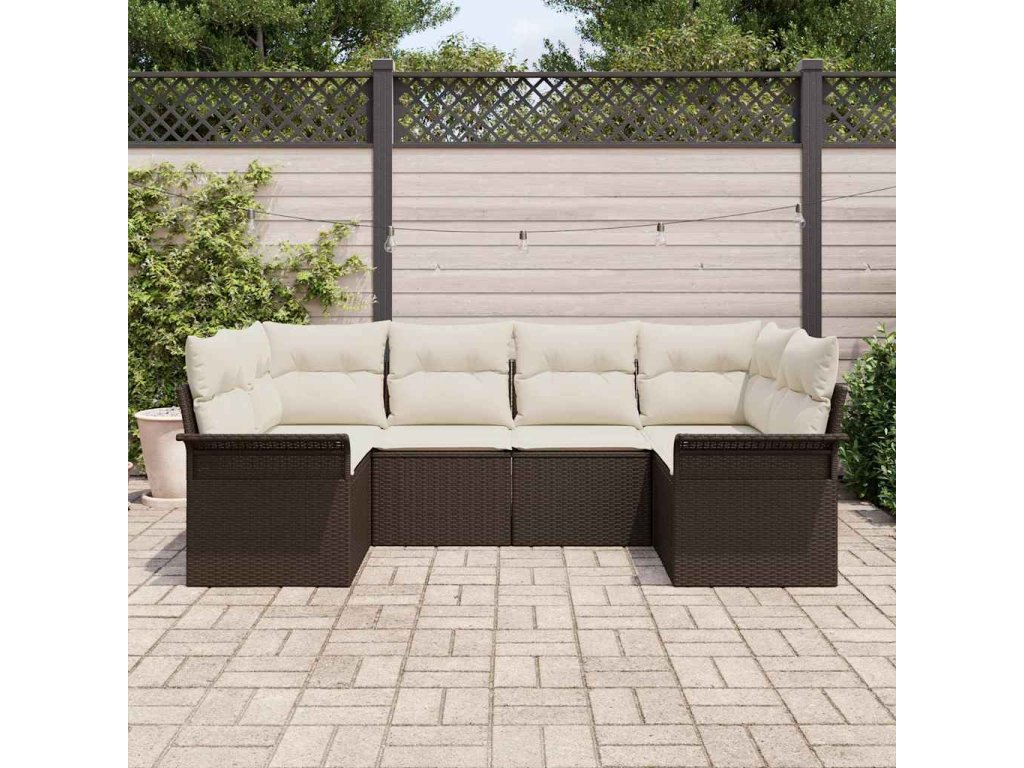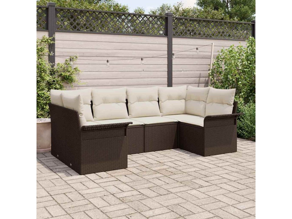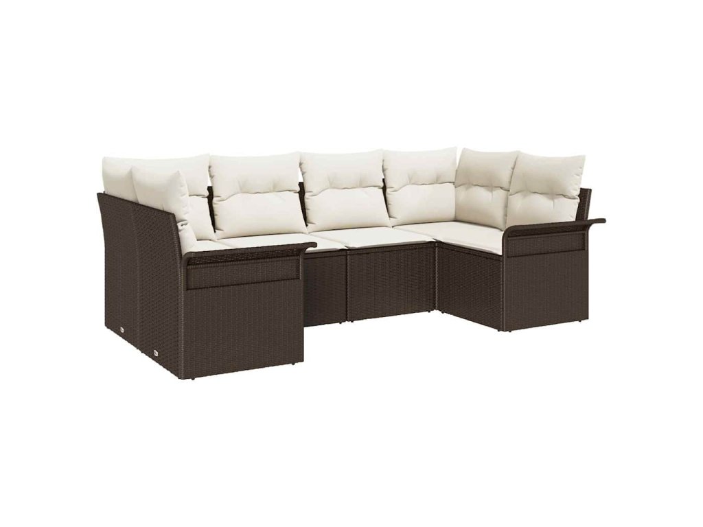 Tahle venkovní rohová pohovka je super volba pro každou zahradu nebo balkón. Má moderní design, co míchá pohodlí a styl. Vyrobená z hnědého polyratanu s měkkými krémovými polštáři, poskytuje příjemné místo na relaxaci a setkání s přáteli.