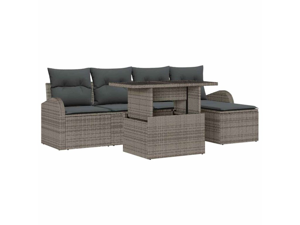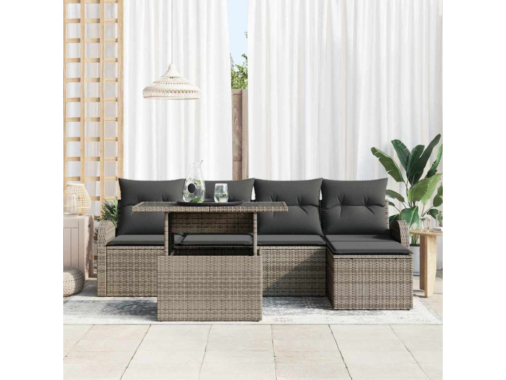 Tato zahradní sedačková sada spojuje moderní styl s vynikajícím komfortem, což z ní dělá skvělou volbu pro venkovní setkání a relaxaci. Její trendy šedá ratanová podoba spolu s tmavě šedými polštáři dodává super útulný vibe, perfektní pro oživení vašeho patia, balkonu nebo zahrady.