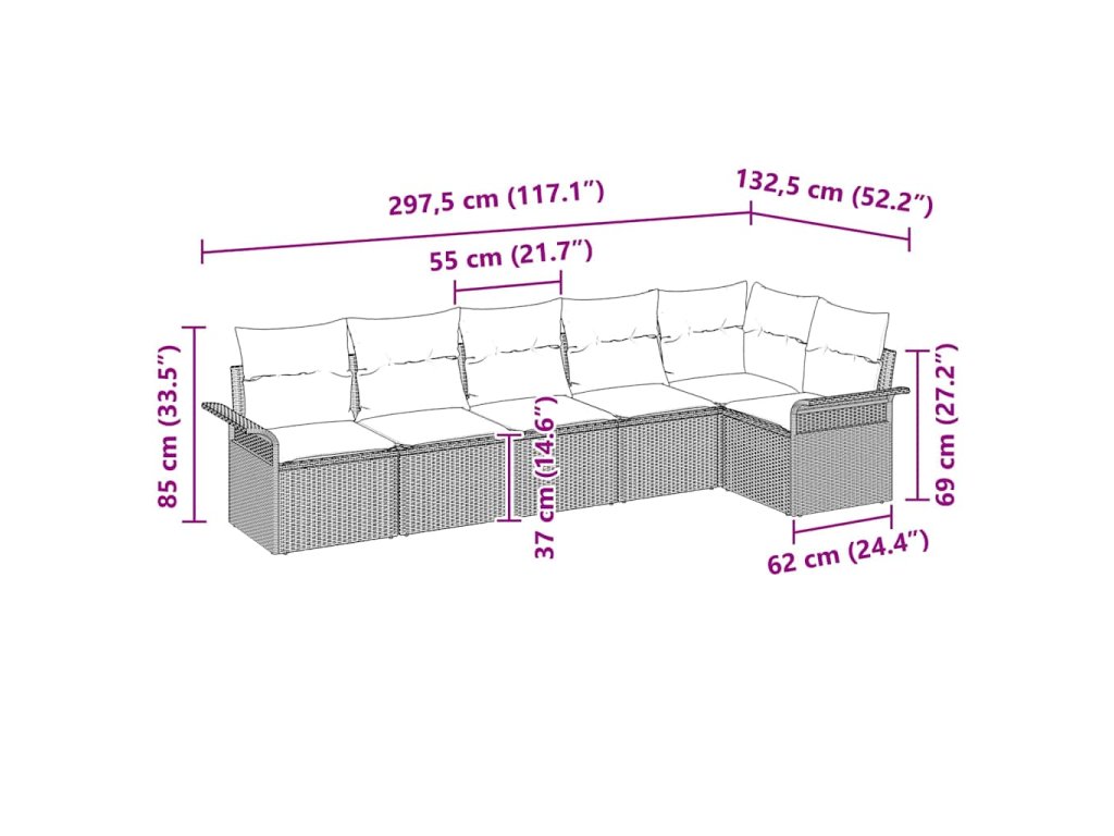 Tahle souprava venkovních pohovek zvedá úroveň vašeho relaxování na zahradě nebo na balkoně. Dodává moderní a vítající atmosféru. Díky velkému prostoru ve tvaru sekce je to ideální pro socializaci a přeměnu vašeho venkovního prostoru na pohodlné místo pro rodinu a přátele.
