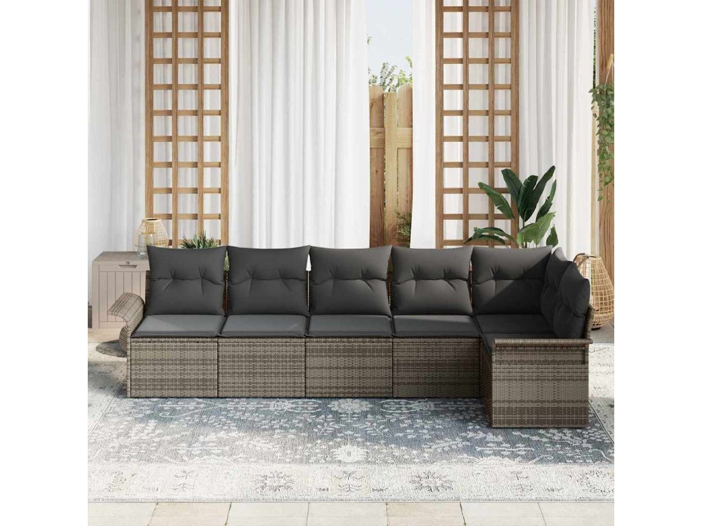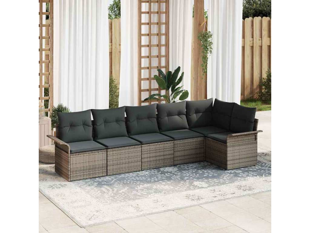 - Flexibilní uspořádání: Souprava obsahuje rohové sedátko, tři středové sedáky a dvě pohovky s opěrkou, což vám dává možnost uspořádat venkovní sezení podle sebe. Jejím modulárním designem jistě přizpůsobíte svému prostoru.