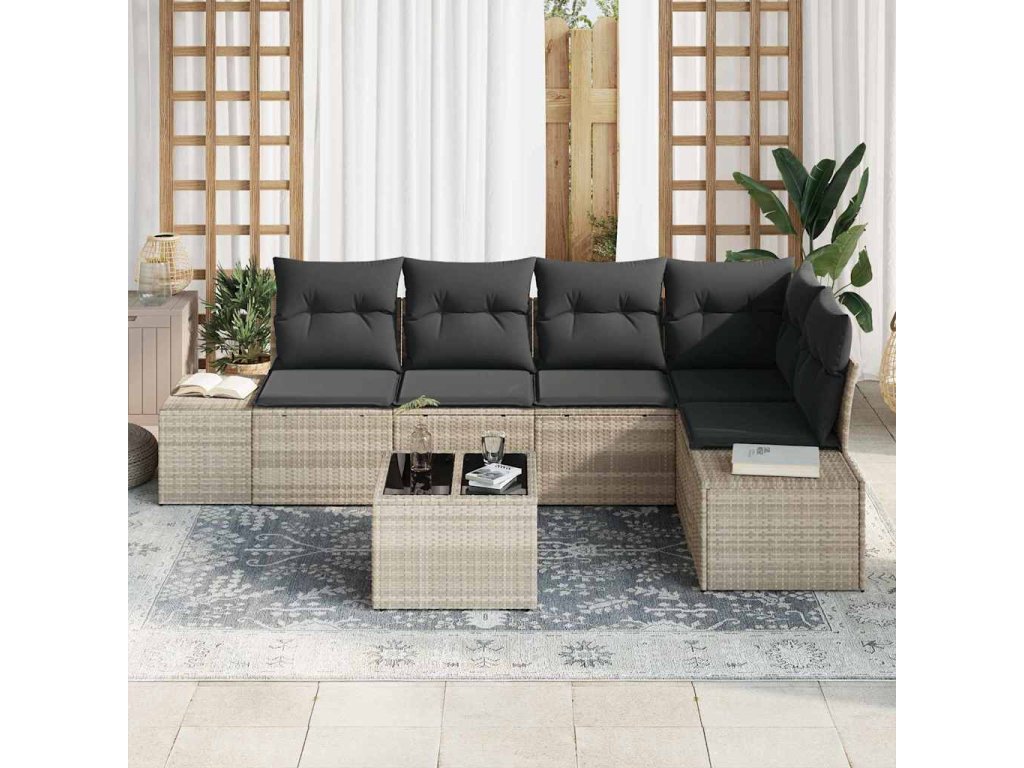 Tahle zahradní pohovka kombinuje moderní design s modulárním stylem a luxusními polštáři, pohodlně pro šest lidí. Je ideální pro oživení každé zahrady nebo terasy. Stylový vzhled a flexibilní uspořádání podporují společenská setkání a pohodlný odpočinek pro rodinu a přátele.