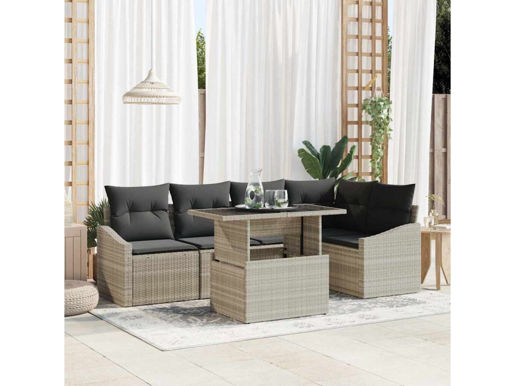 - Univerzální uspořádání Tato sada zahrnuje rohové sedadlo, dvě centrální části, dvě pohovky s opěrkami a stůl, což nabízí několik sezení na základě prostorových požadavků nebo osobních preferencí. Její univerzální rozložení je vhodné pro zahradní nebo terasové prostředí, doplňující různé venkovní motivy.