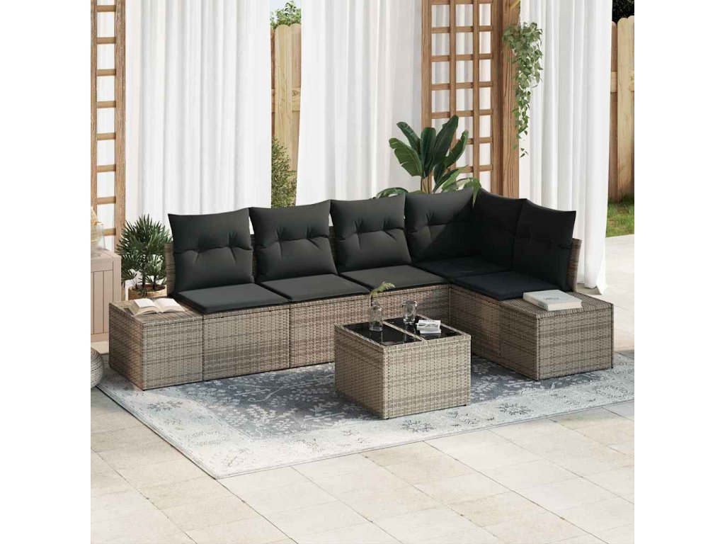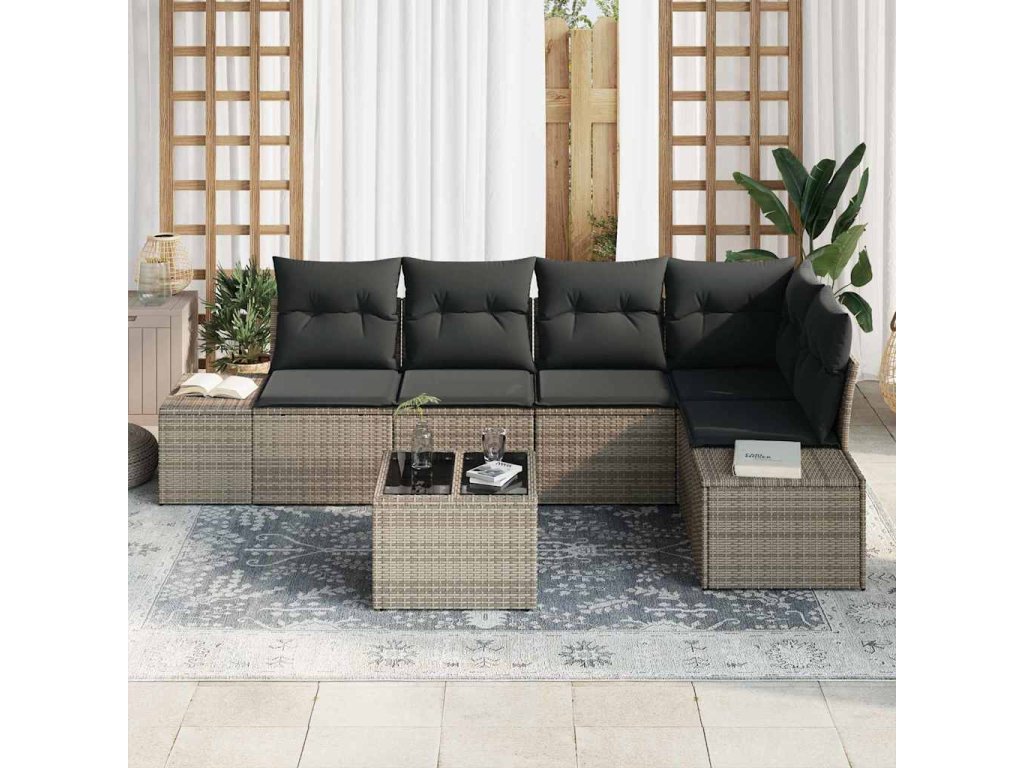 Tato venkovní sekční pohovka nabízí moderní design a praktičnost, ideální pro tvou zahradu nebo terasu. Pohodlně se sem vejdou až pět dospělých a díky modulárnímu vzhledu je perfektní pro venkovní setkání.
