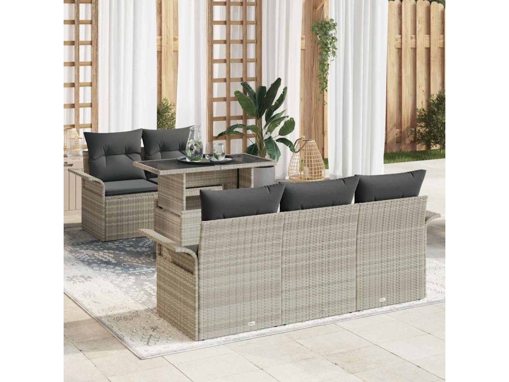 Tahleta sada zahradních pohovek spojuje pohodlí a styl, a je tak ideální pro venku. S elegantním designem a pohodlnými polštáři promění jakýkoliv kout na balkoně nebo terase na útulné místo, skvělý pro odpočinek nebo posezení s přáteli.