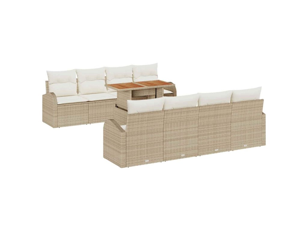 Tahle 9dílná sada zahradního nábytku přináší třídu a praktičnost, což z ní dělá skvělý středobod pro tvoje venkovní prostory. Je vyrobená z kvalitního poly ratanu a masivního akáciového dřeva, obsahuje prostorný obdélníkový jídelní stůl a pohodlné sezení pro až osm, ideální na jídlo nebo lenošení za slunečných dnů.